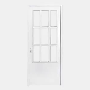 Puerta de Exterior, doble chapa inyectada, 3/4 vidrio repartido con postigo y mosquitero.